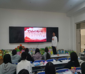 团委书记李思邈老师在会上讲到,党的十九届六中全会在京召开,是我党的一件大事。我党的百年光辉历程和伟大成就,彰显了一代代中国共产党人奋勇争先的蓬勃朝气、不懈奋斗的昂扬斗志,汇聚了攻坚克难、奋力前行的强大精神力量,振奋了我们迈上新征程、奋进新时代的“精气神”。我院学生要从党的百年奋斗史经验中启迪智慧、砥砺品格,克服奋斗路上的困难,在经历雨中成长,始终牢记初心使命,矢志不渝奋斗前行。