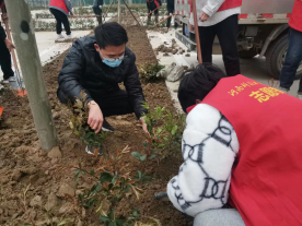 首先,李思邈老师在活动开始前,向参加本次活动的学生干部志愿者们深情寄语,向大家倡议树牢生态意识、履行生态义务、勇担生态责任;深入认识义务植树是一种文化传承,也是一份责任担当,更是一种精神追求和奉献境界。生态文明只有进行时,没有完成时,让我们齐心协力,让河科职大校园的水更清、地更净、天更蓝,为以后的学子们厚植生态根脉作出榜样和更大的贡献。枝头花苞初现,泥土散发清香。植树活动中,师生们热情高涨,干劲十足,在老师的带领下,三五人一组拿起工具、相互配合、扶正树苗、挥锹铲土、填土踩实、合力栽下一个个树苗,整个植树现场一片火热朝天。经过一下午的努力,在师生们的默契配合下,校园新树顺利栽种完毕,看着亲手栽种的树苗,师生们脸上露出灿烂的笑容,纷纷合影留念,绿油油的小草和志愿服装的红连在一起,真是绿叶红花相映好,别是一番景致。活动结束后,李思邈老师就在爱绿护绿的基础上,结合校园具体问题,在爱护校园公物方面对同学们提出了具体要求,针对当前校园里出现了一些破坏公物的不文明现象,指出爱护学校公物是一种最直接有效的爱校、爱班的表现,彰显了个人素质,提现了人格培养,要求同学们“勿以善小而不为,勿以恶小而为之”从身边小事做起,把爱护校园公物养成一种习惯,希望你们学生干部代表把这种观念带给身边人,我们一起用很实际行动美化我们的校园。