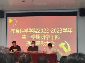 9月26日,教育科学学院团总支、学生会干部换届表彰大会在新综合楼阶梯教室632顺利进行,会议由党总支书记朱北堂、学管办主任辛慧杰和院团总支书记李思邈主持召开;院学生会和团总支学生干部全体参与。