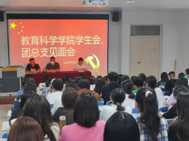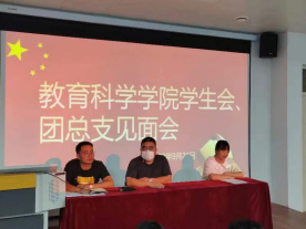 金秋九月,碧空如洗,丹桂飘香,在这个凉爽舒适的季节里,我们迎来了教育科学学院团总支、学生会见面会。此次大会于9月26日19:00在新综合教学中心632教室隆重举行,参加本次见面会的有党总支部书记朱北堂、学管办主任辛慧杰、院团总支书记李思邈以及全体学生干部成员。