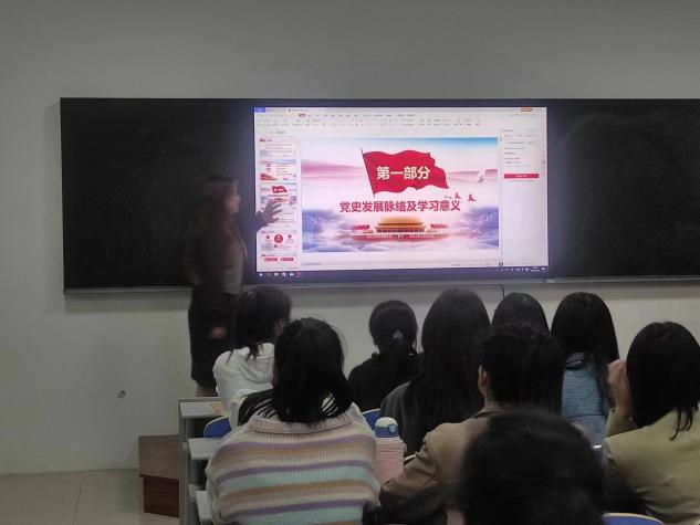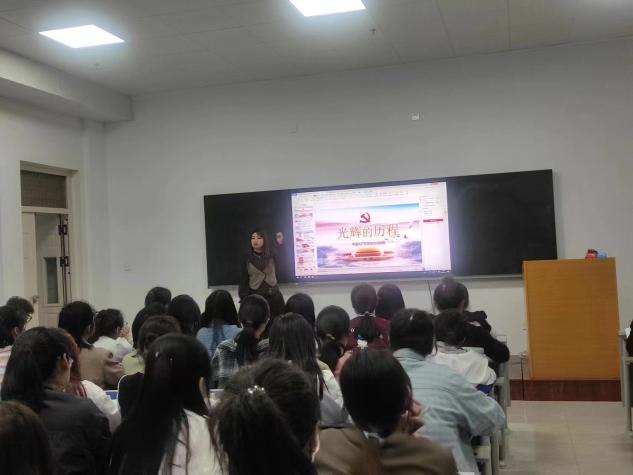 为深入学习贯彻习近平新时代中国特色社会主义思想,加强对学生的教育管理,教育引导学生坚定理想信念,以实际行动贯彻落实习近平总书记在党史教育动员大会上的要求,于2023年4月10日晚上六点五十我院新一批积极分子在新综合教学中心117教室上第一节党课,由杨盼盼老师主讲。