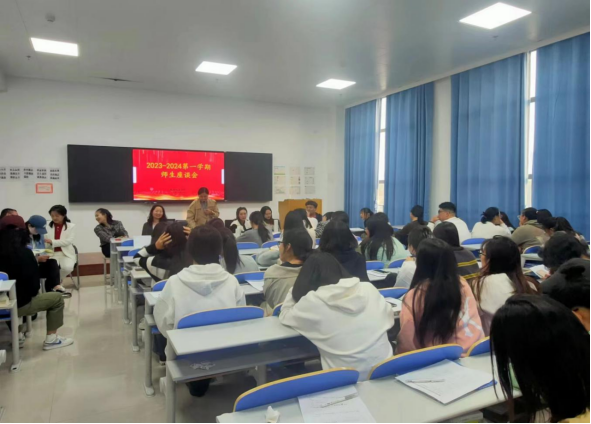 为全面了解我院本学期课堂教学及教学管理情况,广泛听取意见和建议,及时发现、研究和解决存在的问题,促进教学质量稳步提高,根据教务处2023-2024学年第一学期期中教学检查的工作安排,学院于2023年10月24日15:30—17:30在教学中心219召开2023-2024学年第一学期学生座谈会。教育科学学院院长及副院长、各教研室主任、教师和辅导员代表及教育科学学院各班级学习委员和学生代表参与此次座谈。
