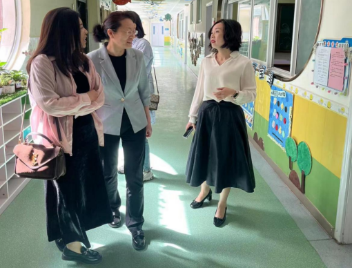 调研组在执行园长徐悦的陪同下,分别参观了大、中、小班教室、手工活动室、图书室、环创展示场地,双方于参观后举行座谈会。