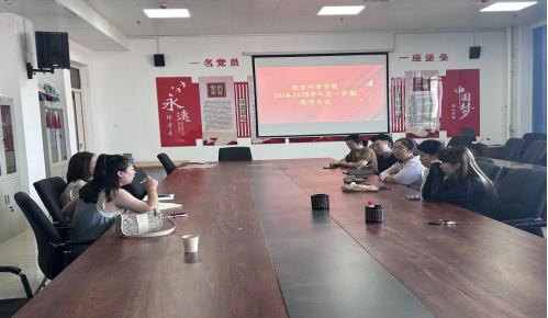 2024年8月26日下午教科院全体会议结束后,学前基础教研室在综合教学中心704会议室召开本学期“期初工作安排”教研室教研会议,对本学期教研室主要事宜做简单阐述和安排。会议由邓少雯主任主持,教研室全体教师参加会议。