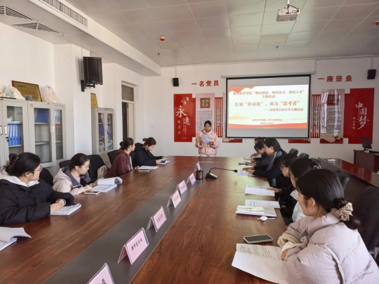 为充分发挥党员的先锋模范作用,营造勤学、善思、笃行的优良学风,河南科技职业大学教育科学学院第一学生党支部以“舞出精彩、唱出活力、讲出人生”为主题,开展本次分享活动,为学院学风建设添砖加瓦,从而营造“比学赶超、奋勇争先”的浓厚学习氛围。