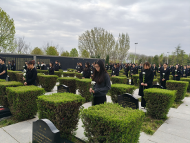 活动当天,烈士陵园内松柏苍翠、庄严肃穆,处处洋溢着庄重肃穆的氛围。师生们怀着无比崇敬的心情,整齐列队于烈士纪念碑前,全体肃立默哀,向为国家独立、民族解放和人民幸福英勇献身的革命先烈致以最崇高的敬意与深切哀思,默哀现场寂静无声,唯有对先烈的缅怀与敬仰在空气中流淌。默哀仪式结束后,领导老师与团员代表缓步上前,将一束束洁白的鲜花郑重敬献于烈士纪念碑与烈士墓碑前,鲜花寄托着师生们对革命先烈的无限追思,也象征着先烈们崇高无私、永垂不朽的革命精神。随后,师生们手持清洁工具,轻轻擦拭烈士墓碑上的尘埃,细心清理墓碑周边的杂物,用实际行动守护先烈安息之地,表达对革命先烈的深切缅怀与诚挚敬意,每一个细微的动作,都饱含着当代青年对先烈的尊崇与感恩。