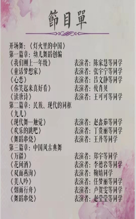 迎着太阳,我们铺开七彩的画卷;走向未来,我们书写豪迈的誓言。在共产党的带领下我们已走在了阳光路上,为排练好开场舞蹈《灯火里的中国》,能够以饱满的热情进行开场,陈正一老师对该舞蹈的整齐度要求很高,整齐的步伐与同伴的欢声笑语,以教科学子的青春和朝气拉开晚会序幕。