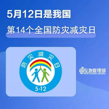 从2009年起,5月12号被定为全国“防灾减灾日”, 防灾减灾日的图标以彩虹、伞、人为基本元素,雨后天晴的彩虹韵意着美好、未来和希望,伞的弧形形象代表着保护、呵护之意,两个人代表着一男一女、一老一少,两人相握之手与下面的两个人的腿共同构成一个“众”字,寓意大家携手,众志成城,共同防灾减灾。整个标识体现出积极向上的思想和保障人民群众生命财产安全之意。