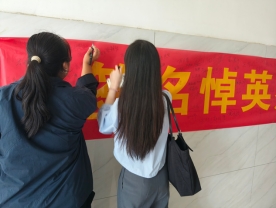 活动筹备阶段,学院通过多渠道,全方位的宣传举措让学生们深入了解革命先辈为国家和人民所做出的伟大牺牲,为活动营造出庄重且充满敬意的氛围。活动现场,一条印着“签名悼英烈,赤诚传薪火”字样的红色横幅格外醒目。教育科学学院的同学们手持签字笔,依次走到横幅前,怀着崇敬之情郑重签下自己的名字。每一个签名,都是对英烈的缅怀与致敬,也是对传承英雄精神的承诺。参与活动的同学纷纷表示,在签名的过程中,仿佛与英烈们进行了一场跨越时空的对话,深刻感受到如今幸福生活的来之不易。