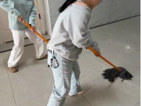 活动当天,教育科学学院的同学们手持扫帚、拖把、抹布等清洁工具,迅速抵达各自负责的清扫区域,以饱满的热情投入到大扫除工作中。在教学楼内,同学们分工明确、干劲十足。有的专注擦拭墙壁,细致清理每一处灰尘与污渍,让墙面重焕洁净本色;有的手持拖把来回擦拭地面,不放过任何一个卫生死角,全力营造干净整洁的室内环境。校园道路及绿化带区域同样一片忙碌景象,同学们手持扫帚认真清扫路面落叶与杂物,并使用工具细致捡拾绿化带内的垃圾,有条不紊地开展清洁工作。